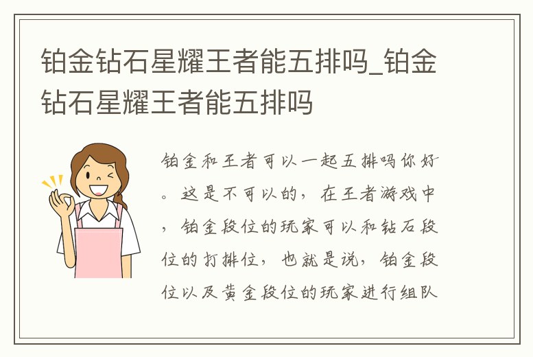 鉑金鉆石星耀王者能五排嗎_鉑金鉆石星耀王者能五排嗎