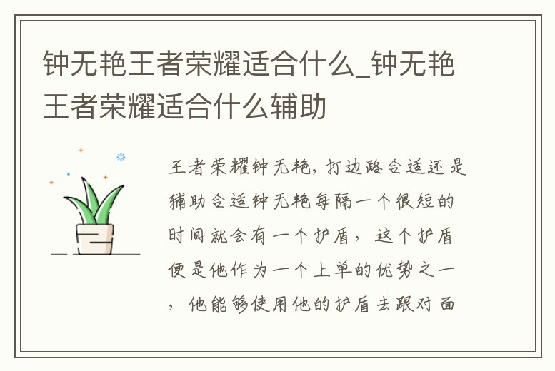 鐘無艷王者榮耀適合什么_鐘無艷王者榮耀適合什么輔助