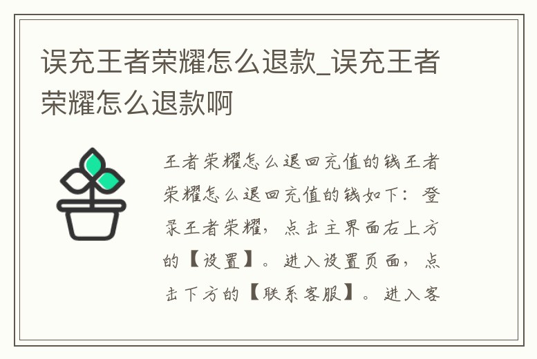 - 誤充王者榮耀怎么退款_誤充王者榮耀怎么退款啊