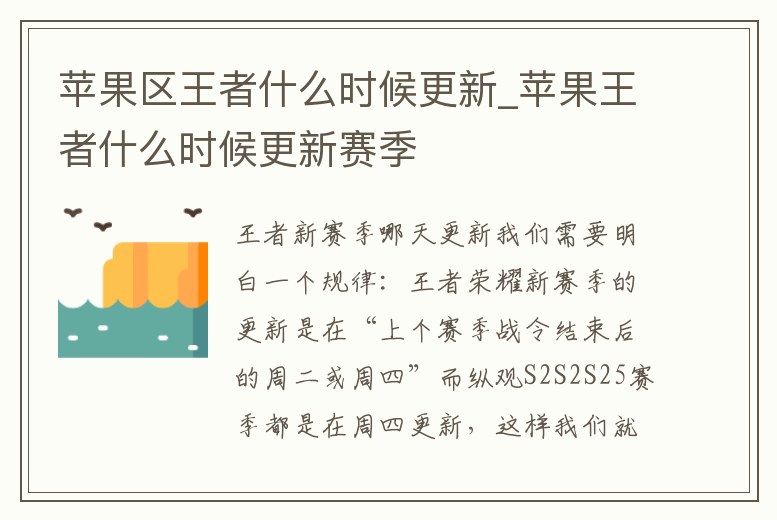 蘋果區(qū)王者什么時候更新_蘋果王者什么時候更新賽季