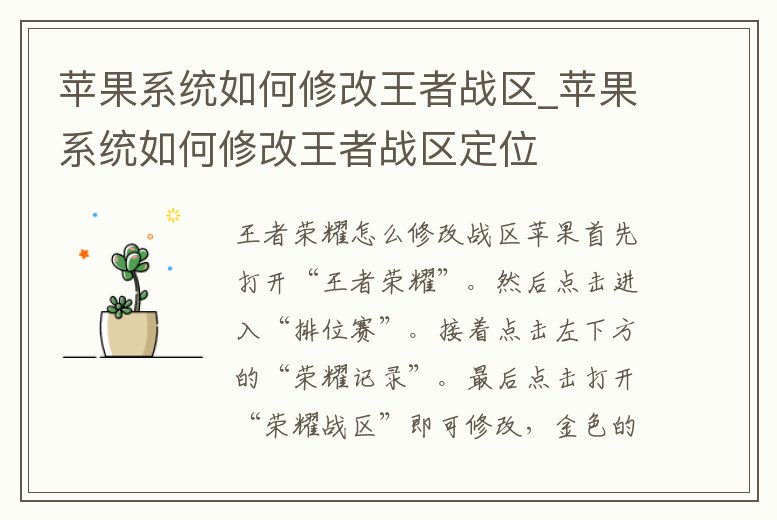 蘋(píng)果系統(tǒng)如何修改王者戰(zhàn)區(qū)_蘋(píng)果系統(tǒng)如何修改王者戰(zhàn)區(qū)定位