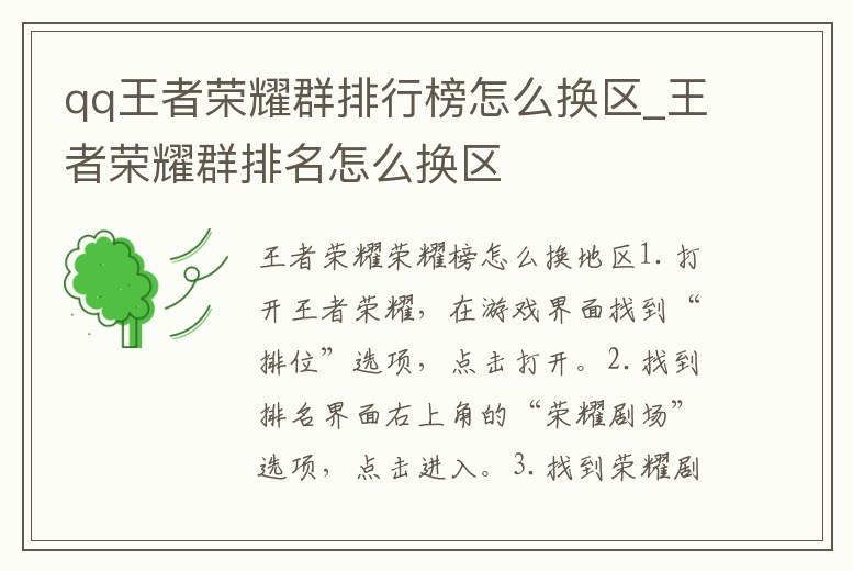 qq王者榮耀群排行榜怎么換區(qū)_王者榮耀群排名怎么換區(qū)