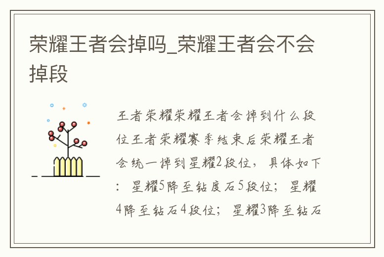 榮耀王者會掉嗎_榮耀王者會不會掉段