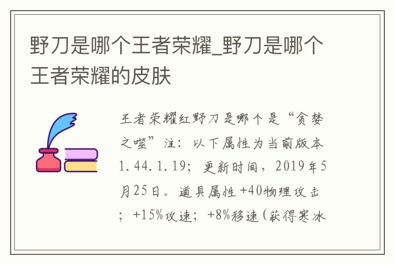 野刀是哪個王者榮耀_野刀是哪個王者榮耀的皮膚