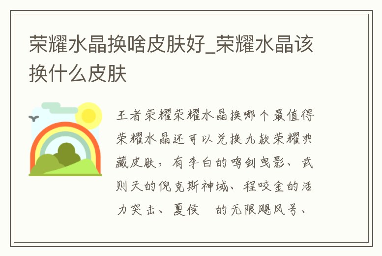 榮耀水晶換啥皮膚好_榮耀水晶該換什么皮膚