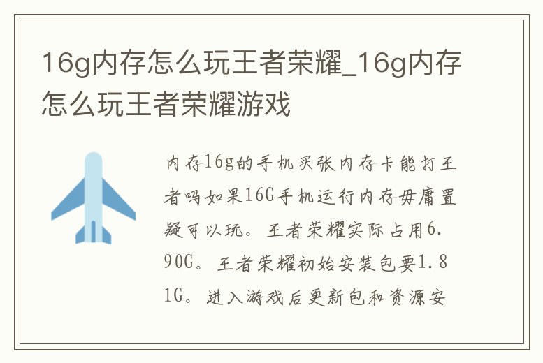 16g內存怎么玩王者榮耀_16g內存怎么玩王者榮耀游戲