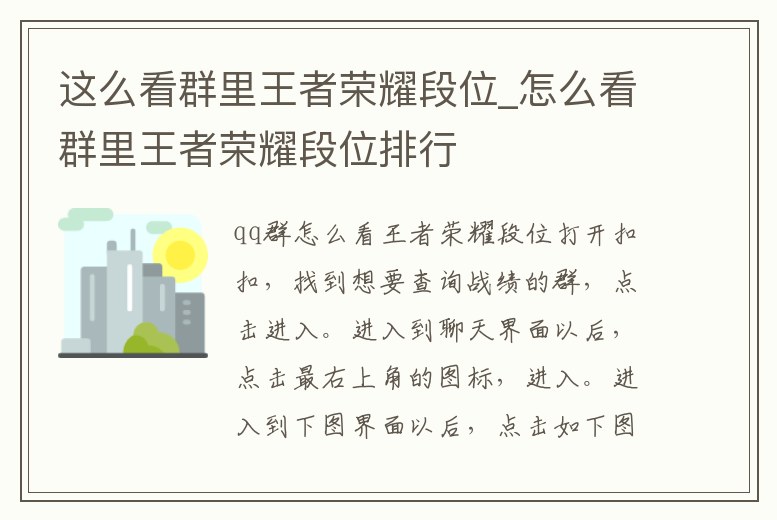 - 這么看群里王者榮耀段位_怎么看群里王者榮耀段位排行