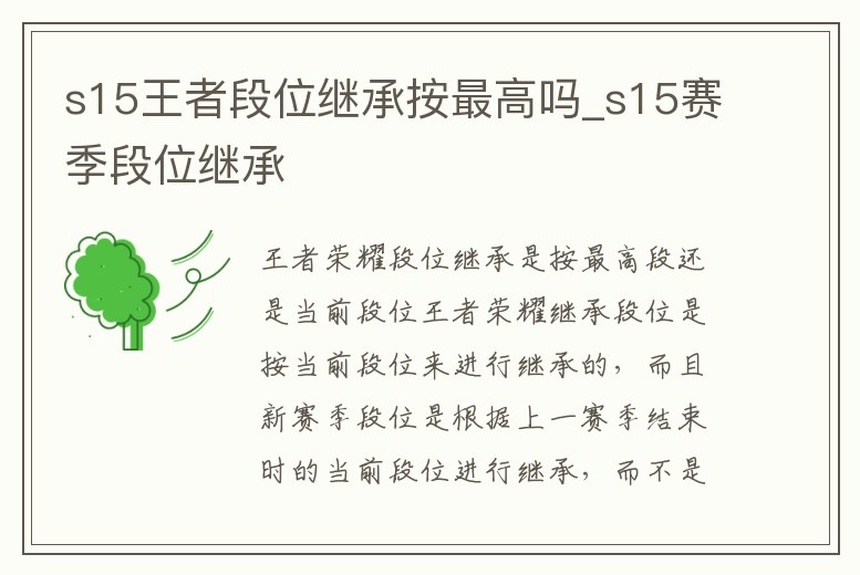 s15王者段位繼承按最高嗎_s15賽季段位繼承