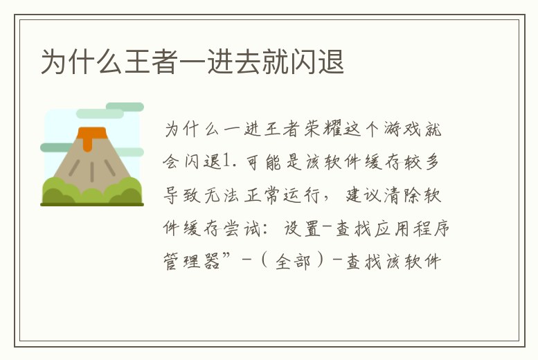 問題一:為什么王者榮耀在平板電腦上老是閃退 軟件出現閃退 程序版本問題 隨著新版本的出來,舊版本有些軟件就會和服務器不兼容等等,所以如果是版本太舊造成閃退,下載新版本即可。 缺少谷歌服務包 部分大型游戲、軟件需要安裝谷。