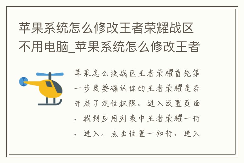 - 蘋果系統(tǒng)怎么修改王者榮耀戰(zhàn)區(qū)不用電腦_蘋果系統(tǒng)怎么修改王者榮耀戰(zhàn)區(qū)不用電腦登錄