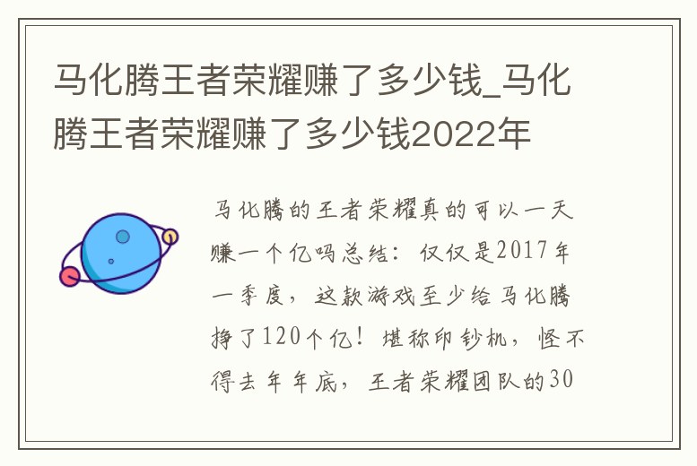 馬化騰王者榮耀賺了多少錢_馬化騰王者榮耀賺了多少錢2022年