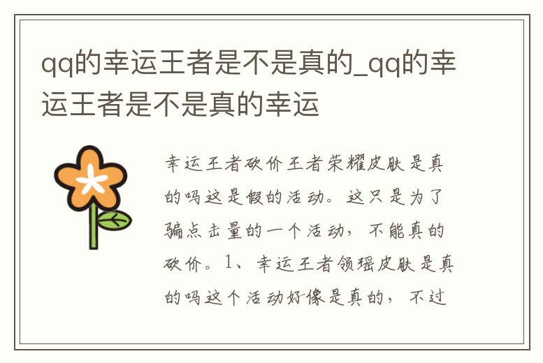 qq的幸運王者是不是真的_qq的幸運王者是不是真的幸運