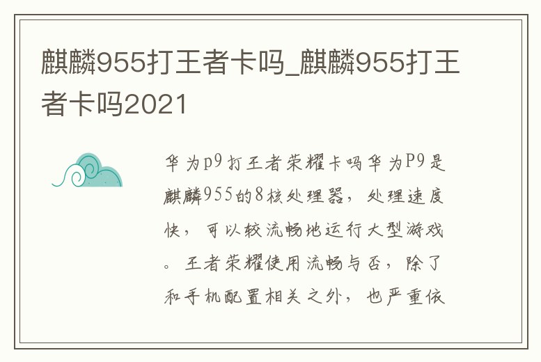 - 麒麟955打王者卡嗎_麒麟955打王者卡嗎2021