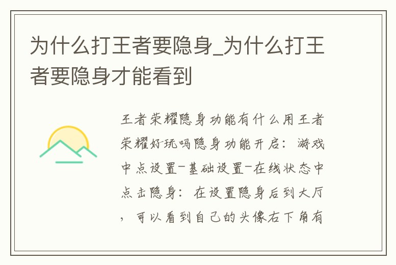 為什么打王者要隱身_為什么打王者要隱身才能看到