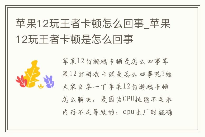 蘋果12玩王者卡頓怎么回事_蘋果12玩王者卡頓是怎么回事