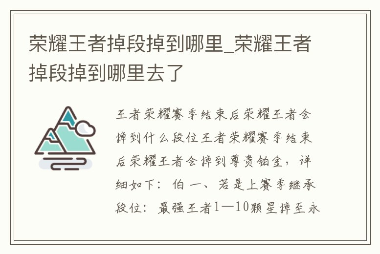 榮耀王者掉段掉到哪里_榮耀王者掉段掉到哪里去了