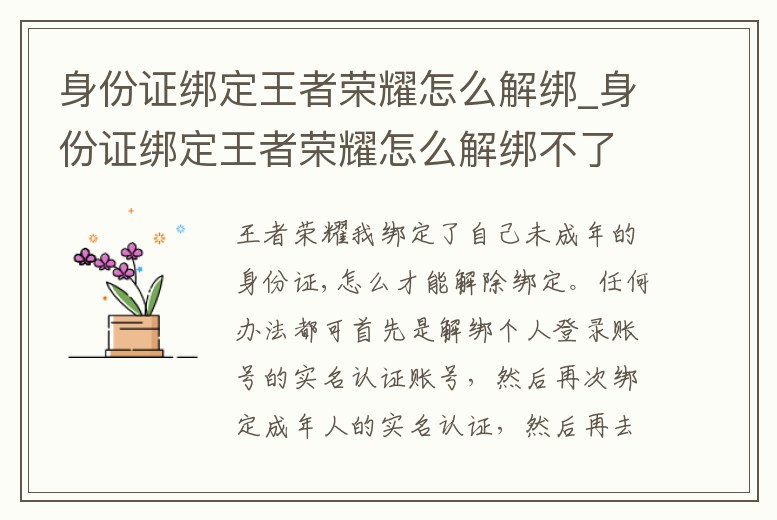 王者榮耀我綁定了自己未成年的身份證,怎么才能解除綁定。任何辦法都可