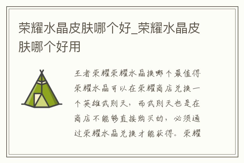 榮耀水晶皮膚哪個好_榮耀水晶皮膚哪個好用