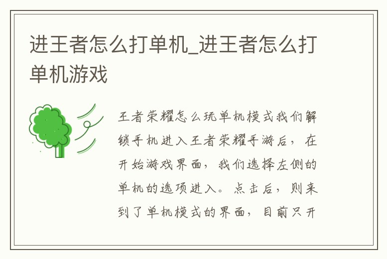 王者榮耀的單機模式在用戶登錄界面。 點擊右側的游戲機圖標,進入單機模式。 請按照以下步驟操作。 首先進入王者游戲,進入用戶登錄界面。 在該界面點擊屏幕右側的游戲機圖標,進入單機模式選擇界面。 單機模式下。