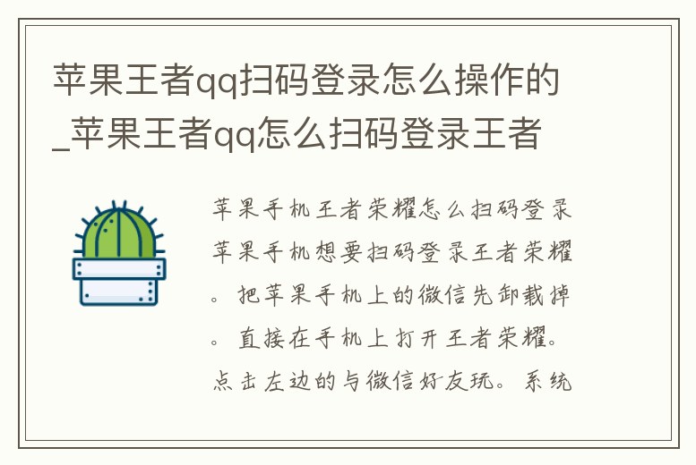 蘋果王者qq掃碼登錄怎么操作的_蘋果王者qq怎么掃碼登錄王者