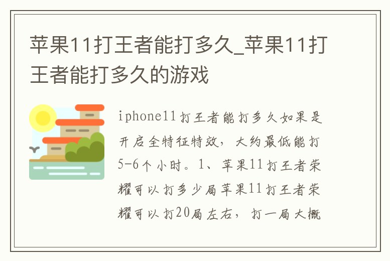 蘋果11打王者能打多久_蘋果11打王者能打多久的游戲