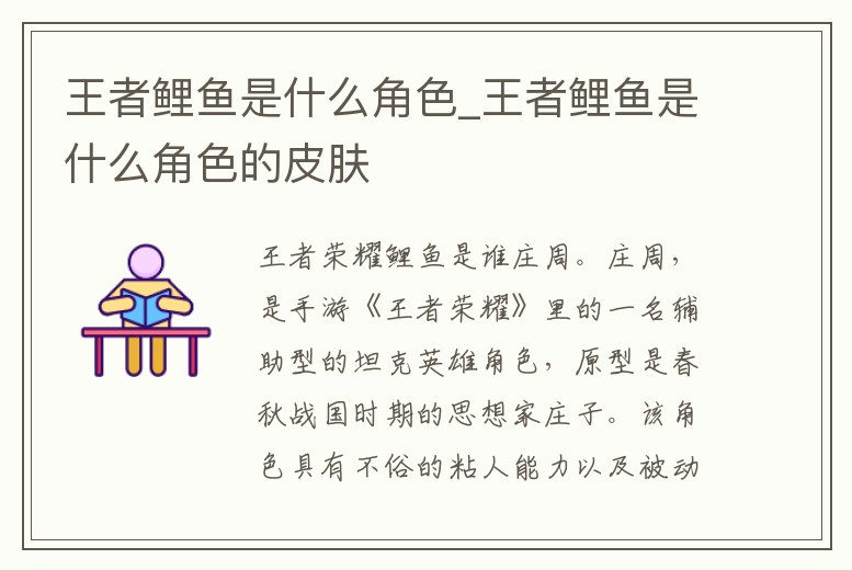 王者鯉魚是什么角色_王者鯉魚是什么角色的皮膚