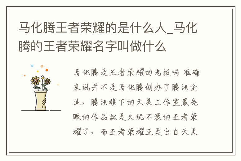 馬化騰王者榮耀的是什么人_馬化騰的王者榮耀名字叫做什么