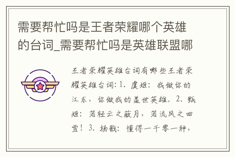 需要幫忙嗎是王者榮耀哪個英雄的臺詞_需要幫忙嗎是英雄聯盟哪個的臺詞