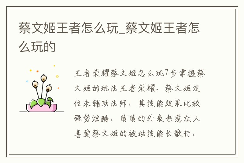 蔡文姬王者怎么玩_蔡文姬王者怎么玩的