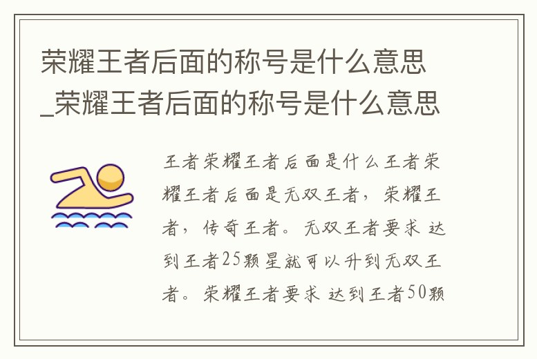 榮耀王者后面的稱號是什么意思_榮耀王者后面的稱號是什么意思呀