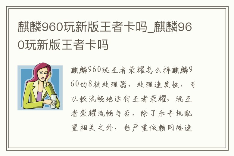 麒麟960玩新版王者卡嗎_麒麟960玩新版王者卡嗎