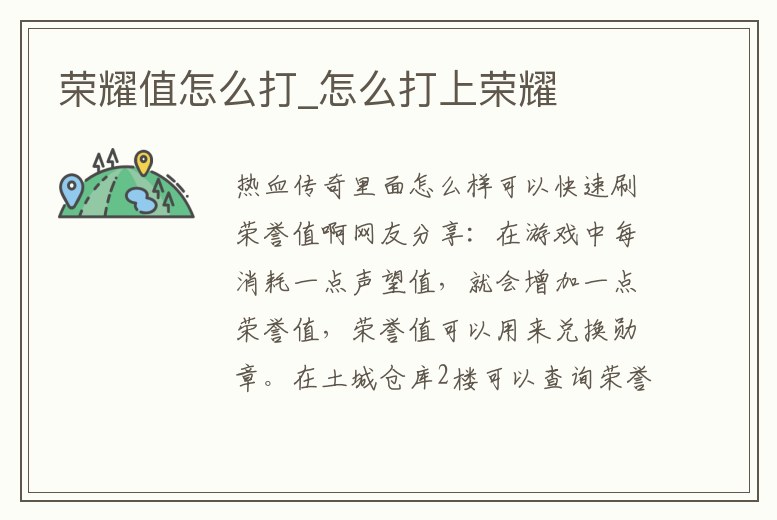 - 榮耀值怎么打_怎么打上榮耀
