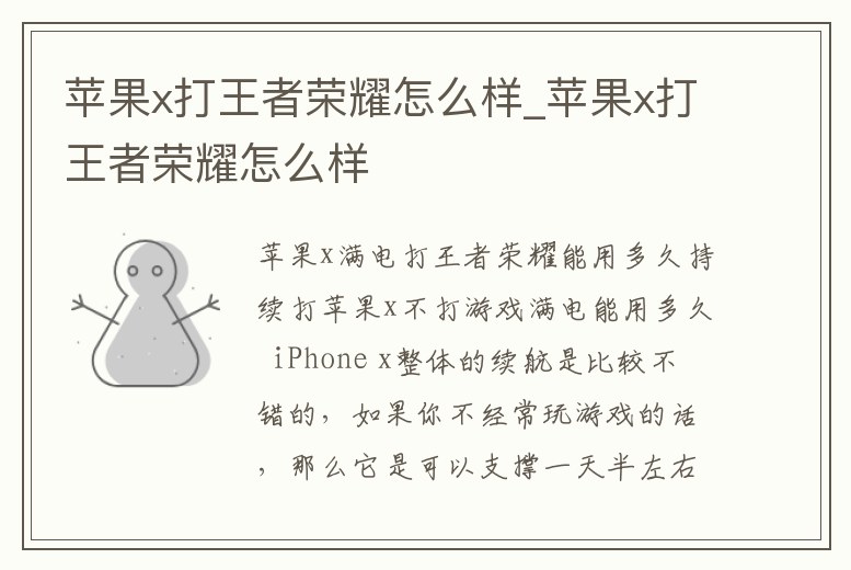 蘋果x不打游戲滿電能用多久 iPhone x整體的續航是比較不錯的,如果你不經常玩游戲的話,那么它是可以支撐一天半左右的日常使用的。如果你對續航方面比較重視的話,那么iPhone x也是不錯的選擇。王者榮耀紅BUFF持續多久 王。