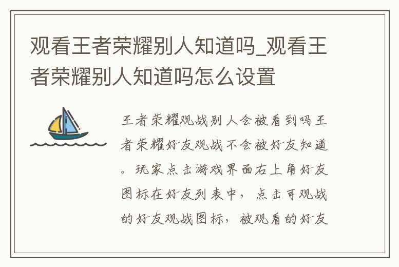 觀看王者榮耀別人知道嗎_觀看王者榮耀別人知道嗎怎么設置
