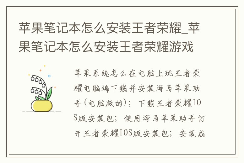 蘋果筆記本怎么安裝王者榮耀_蘋果筆記本怎么安裝王者榮耀游戲