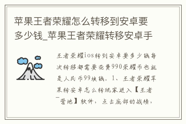 蘋果王者榮耀怎么轉移到安卓要多少錢_蘋果王者榮耀轉移安卓手機