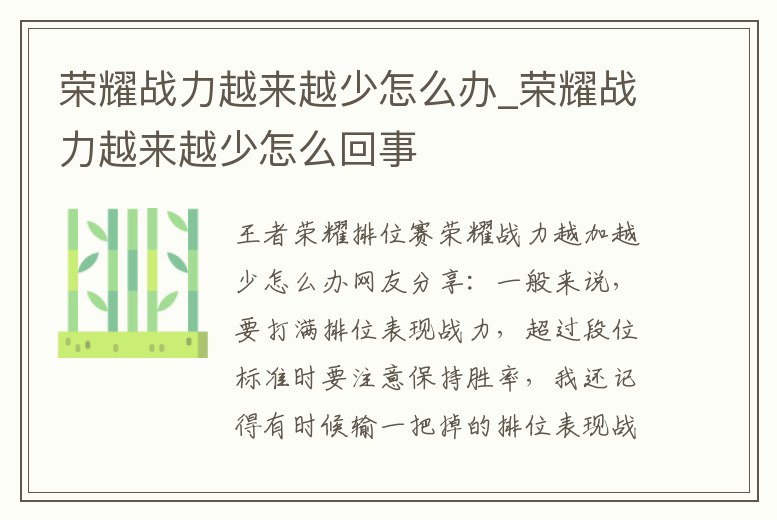 榮耀戰力越來越少怎么辦_榮耀戰力越來越少怎么回事