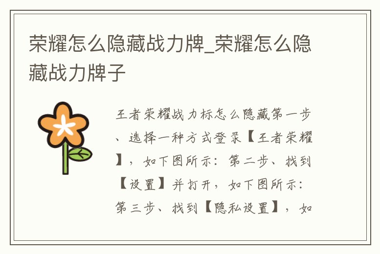 榮耀怎么隱藏戰力牌_榮耀怎么隱藏戰力牌子