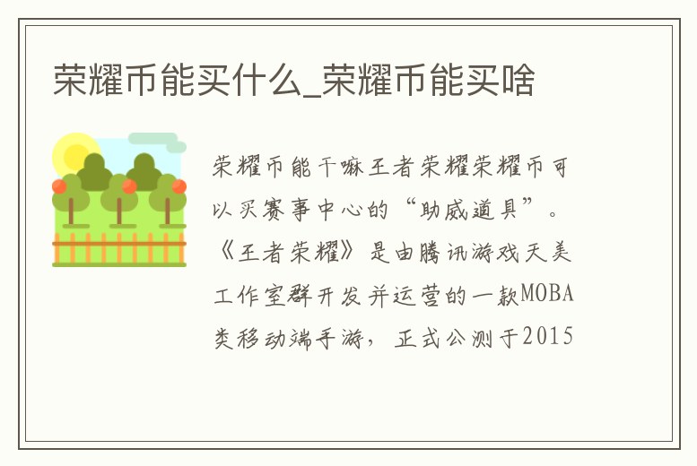 - 榮耀幣能買什么_榮耀幣能買啥