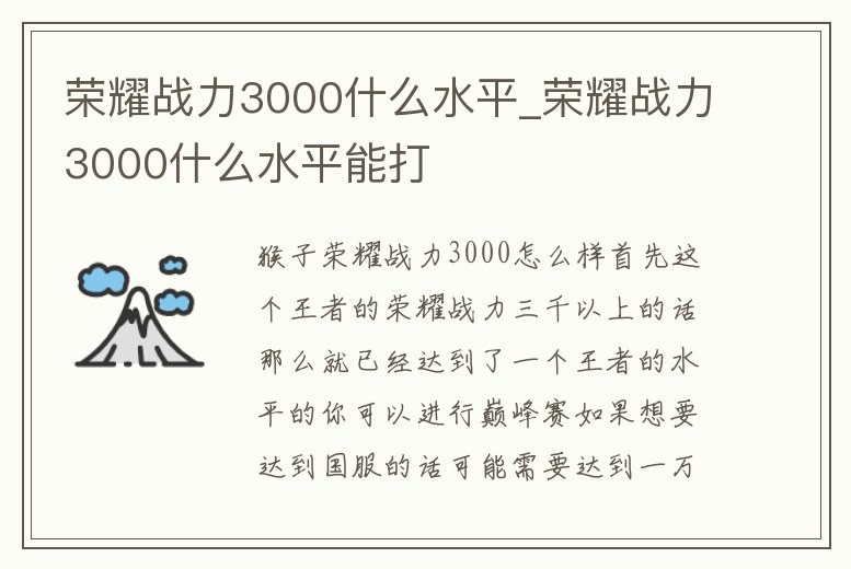 榮耀戰力3000什么水平_榮耀戰力3000什么水平能打