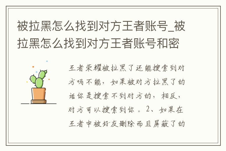 被拉黑怎么找到對方王者賬號_被拉黑怎么找到對方王者賬號和密碼