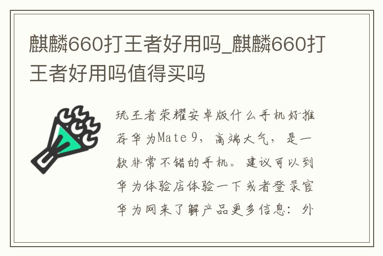 麒麟660打王者好用嗎_麒麟660打王者好用嗎值得買嗎