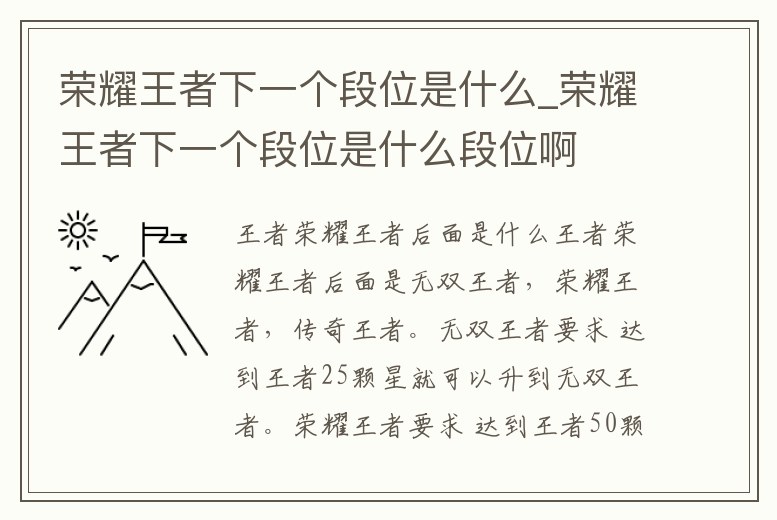 榮耀王者下一個段位是什么_榮耀王者下一個段位是什么段位啊
