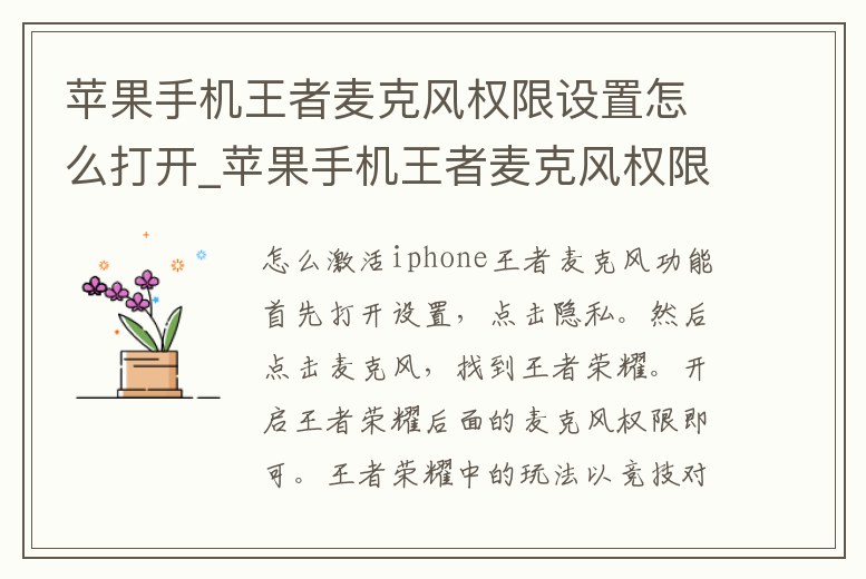 蘋果手機王者麥克風權限設置怎么打開_蘋果手機王者麥克風權限設置怎么打開不了