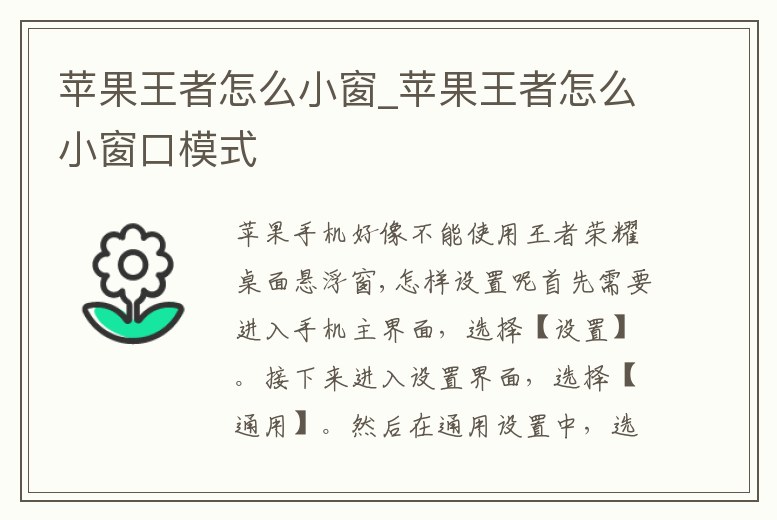 蘋果王者怎么小窗_蘋果王者怎么小窗口模式