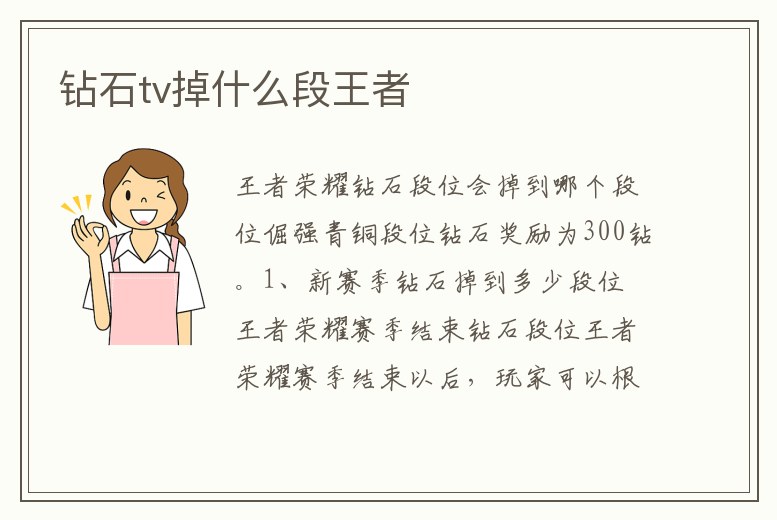 - 鉆石tv掉什么段王者