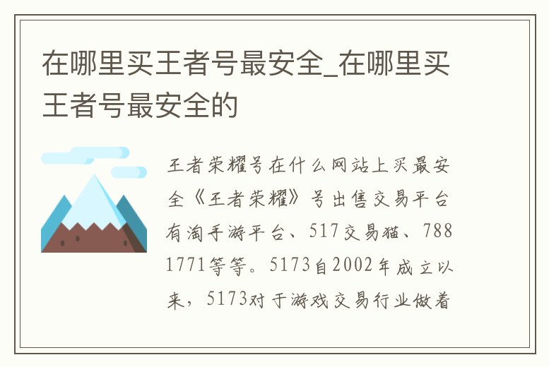 在哪里買王者號最安全_在哪里買王者號最安全的