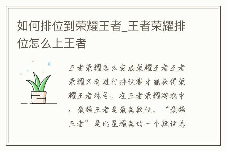 如何排位到榮耀王者_王者榮耀排位怎么上王者