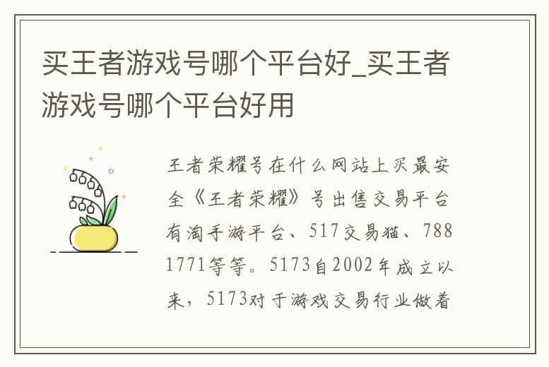 - 買(mǎi)王者游戲號(hào)哪個(gè)平臺(tái)好_買(mǎi)王者游戲號(hào)哪個(gè)平臺(tái)好用
