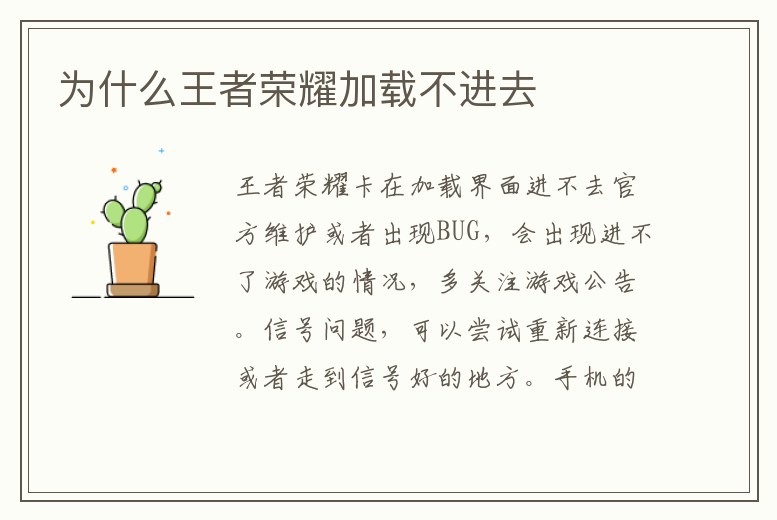 為什么王者榮耀加載不進去